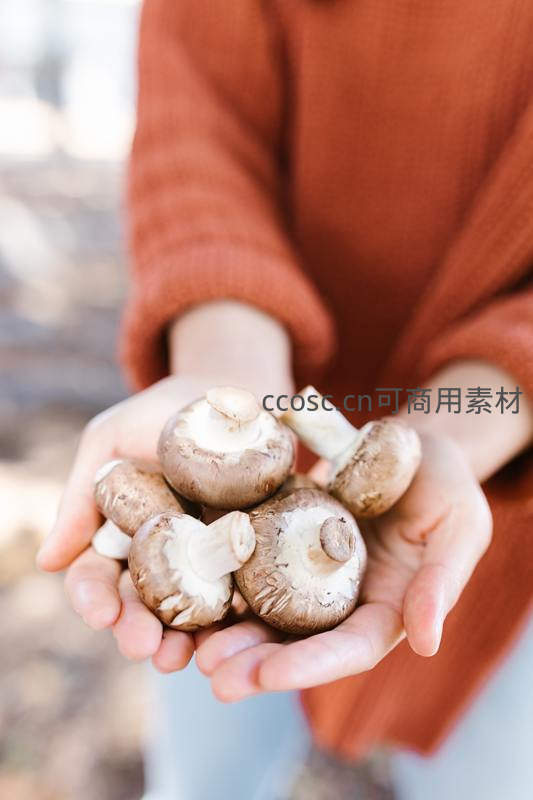 双手捧着新鲜采摘的香菇