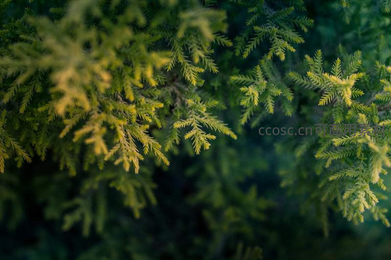 镜头聚焦于松树嫩绿的新芽与细密的针叶,背景虚化突出主体,展现植物生命的细腻与活力。