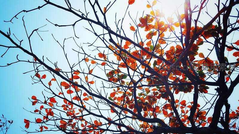 阳光穿透秋叶枝头洒下斑驳光影