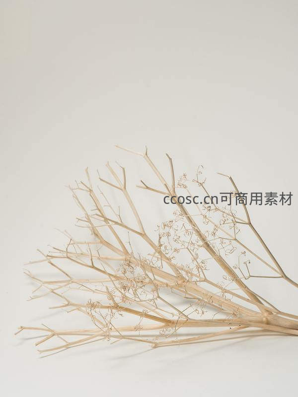 浅色背景下的干枯植物枝条,形态纤细交错,展现自然凋零的静谧美感,适合用于极简风格设计或艺术创作。