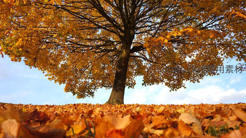 秋日金黄枫树落叶满地