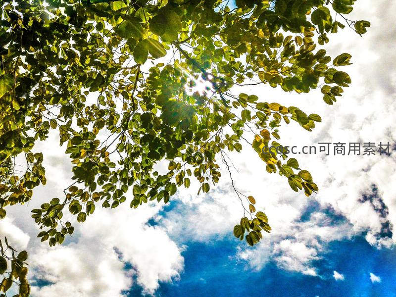 阳光穿透绿叶仰拍