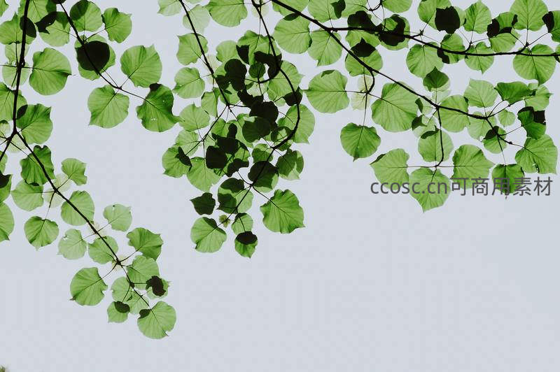 仰望绿叶,阳光透过枝叶洒下斑驳光影