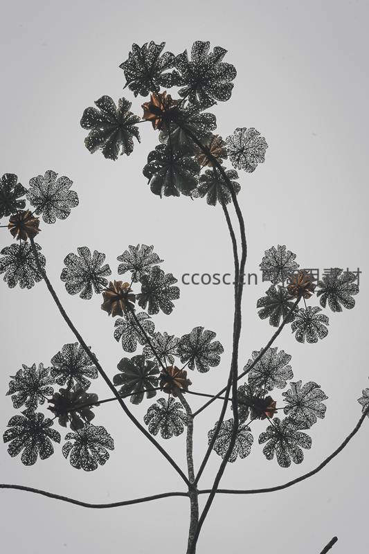 通过微距镜头捕捉植物叶片背面的精细脉络结构,在灰白背景下呈现出如蕾丝般的镂空美感,展现生命微观世界的精妙与秩序。