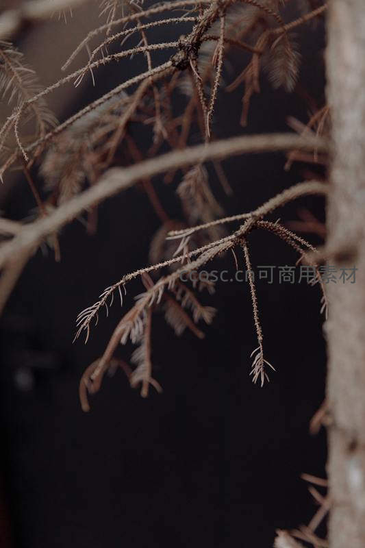 镜头聚焦于干枯松针的精细结构,每一根细小的枝条和针叶都清晰可见,在深色背景的衬托下,展现出自然界独特的质感之美。