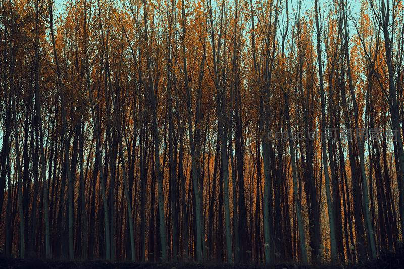 高耸树林剪影,秋色染遍枝头