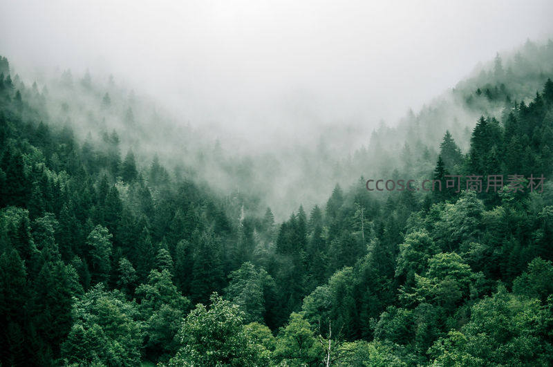 云海漫过山谷,苍翠森林沉浮于雾霭之间