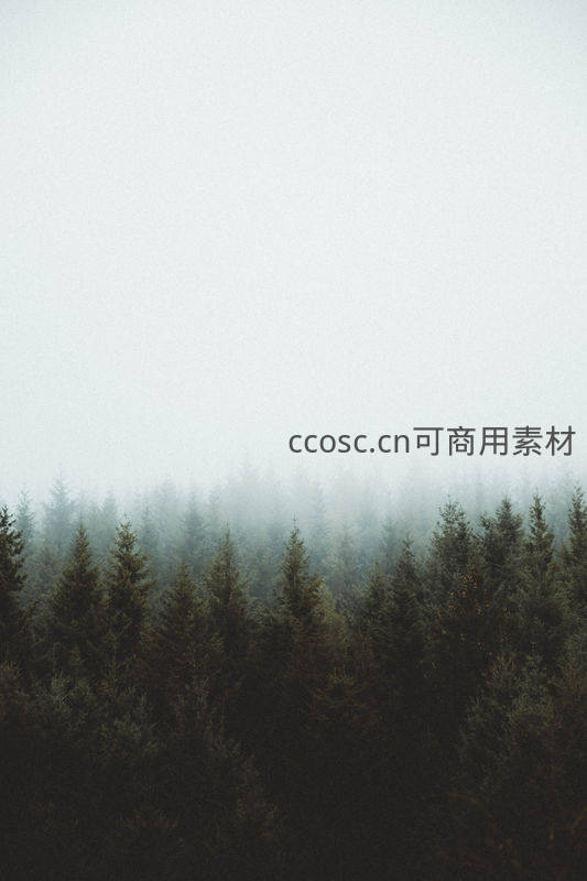 从高空俯瞰,茂密的森林被厚重的云雾半掩,仅露出深绿的树冠,云层与林海交融,展现出大自然的磅礴与柔美。