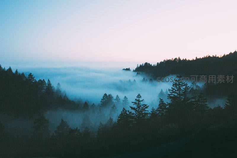 晨雾缭绕山林,云海如梦似幻