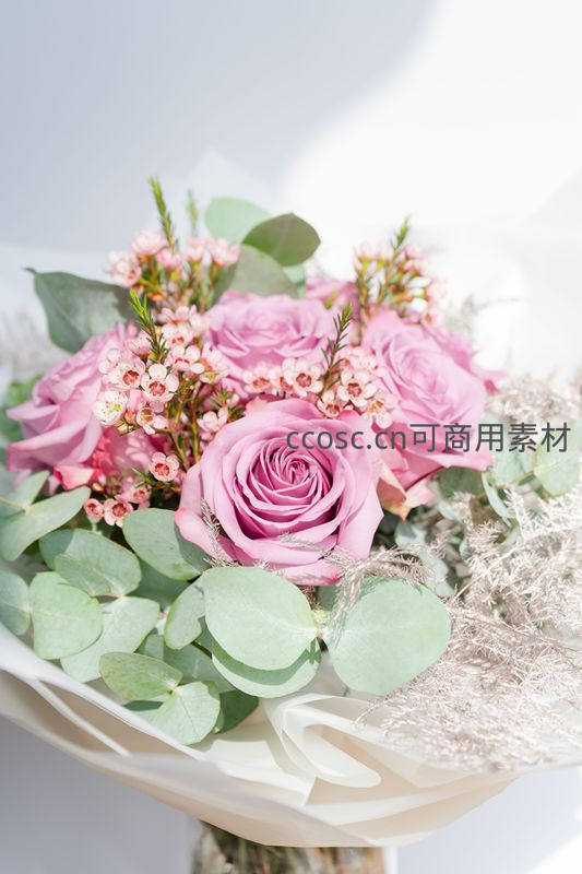 淡紫色玫瑰花束配尤加利叶清新雅致