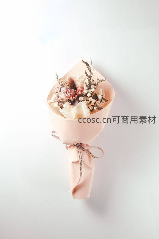 用柔美粉色纸包裹的精致干花束,系上细带蝴蝶结,整体风格温柔浪漫,是表达心意或点缀空间的理想选择。