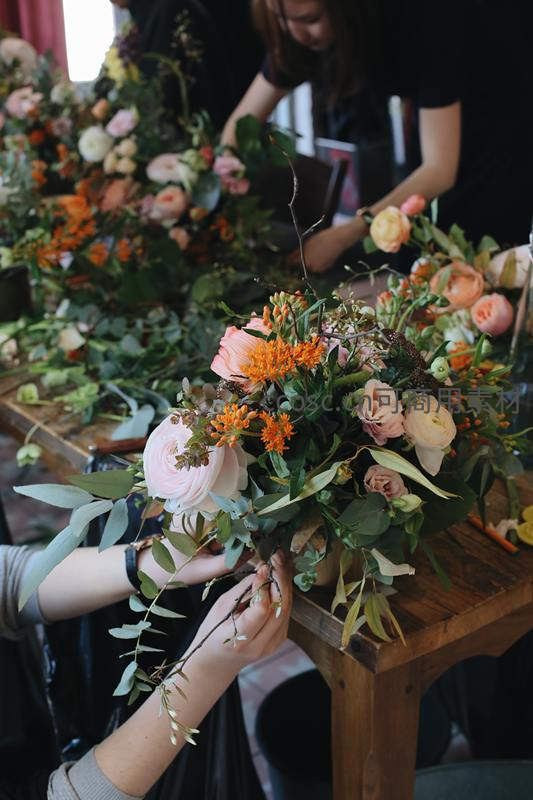 多人协作制作花艺作品,创意满满