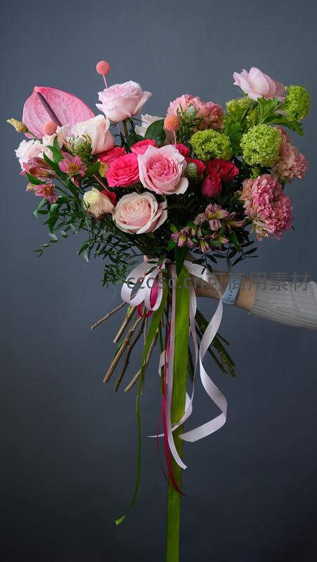 多彩玫瑰混搭花束,丝带飘逸尽显优雅