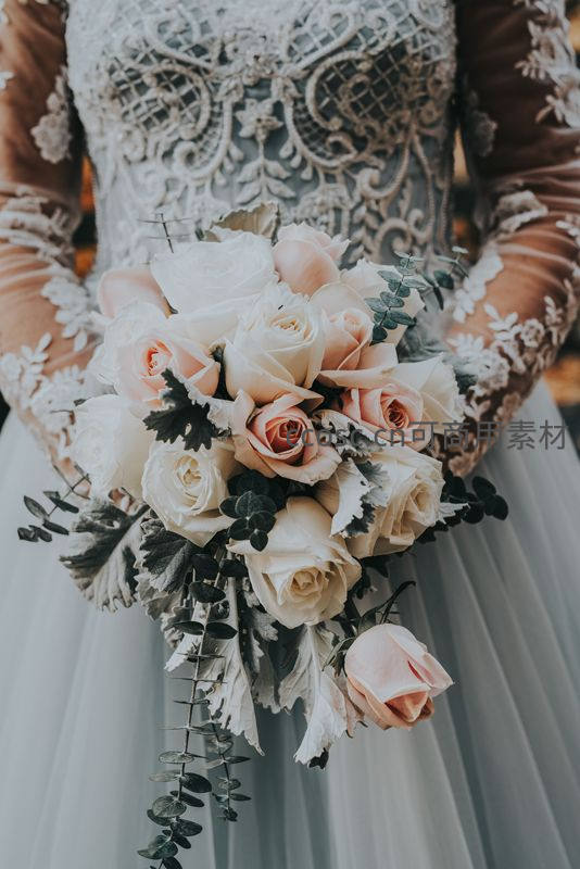 精致蕾丝婚纱捧花特写