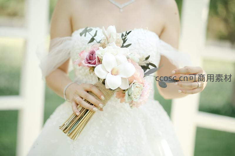 新娘手捧花束,温柔优雅的婚礼瞬间