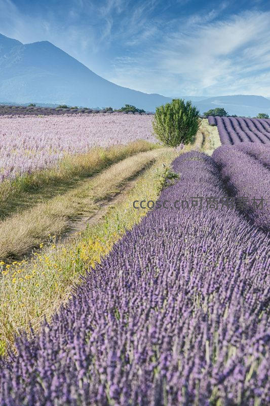 紫色薰衣草田蜿蜒如画,远山为幕天作布