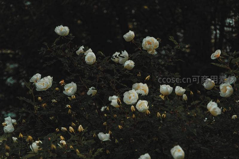 暗影中的白色玫瑰绽放幽静之美