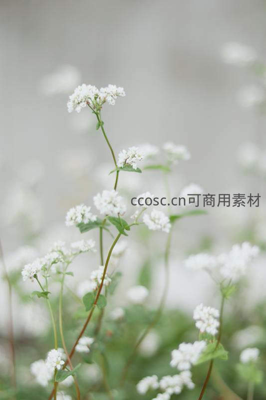 通过微距镜头捕捉到的荞麦花,细小洁白的花朵在浅景深下若隐若现,绿茎轻盈挺立,展现出大自然最纯净温柔的一面。