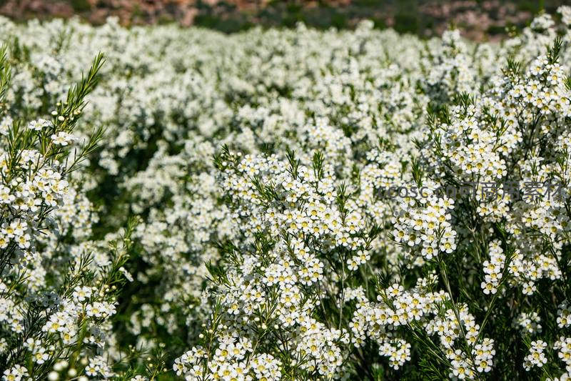 细密洁白的小花如雪般覆盖山野,绿叶点缀其间,在阳光下显得格外纯净,传递出春日的清新与宁静之美。
