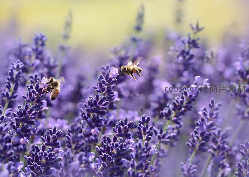 蜜蜂采蜜于薰衣草丛,生机盎然