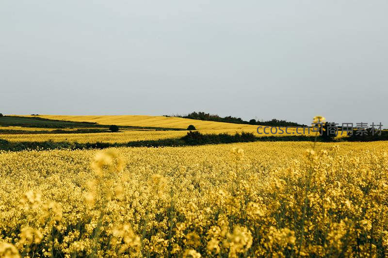连绵起伏的山坡上,层层叠叠的油菜花田如金色的波浪铺展至天边,灰蓝色天空下,这片大地的调色板展现出壮阔而温柔的自然之美。