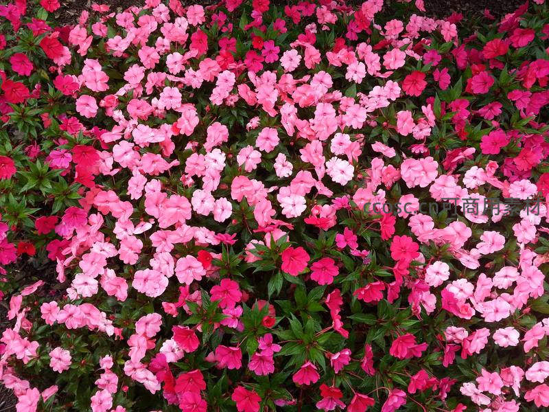 粉红凤仙花海绽放,绿叶衬托生机盎然