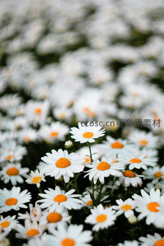 洁白雏菊盛放,橙黄花蕊点缀春日生机