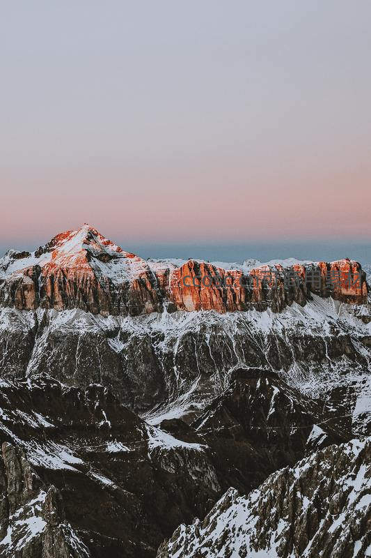 霞光中的雪岭绝壁
