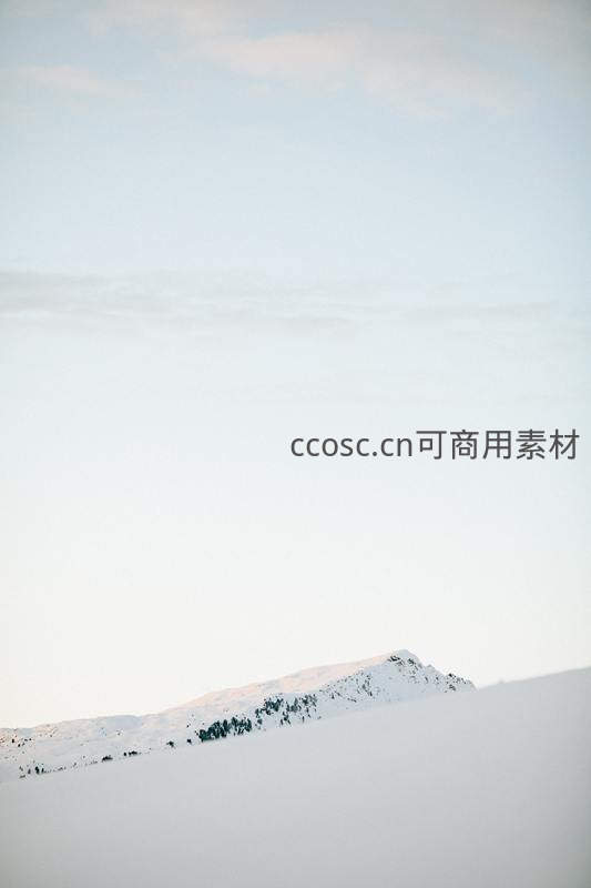 广阔无垠的雪原延伸至天际,远方山峦仅露一抹深色剪影,淡雅天空与纯净雪地营造出极致简约的宁静意境。