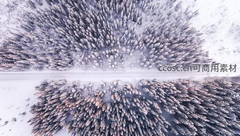一条雪路将两侧覆盖厚雪的森林一分为二,形成近乎完美的对称构图,展现大自然在冬季的秩序与美感。