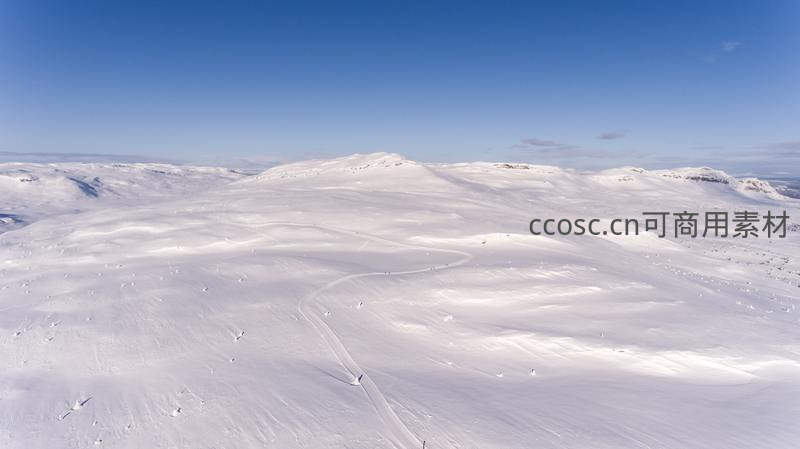 纯净的雪山之巅,几道蜿蜒的滑雪痕迹划破雪面,在湛蓝天空下延伸,记录着极限运动者留下的自由印记。