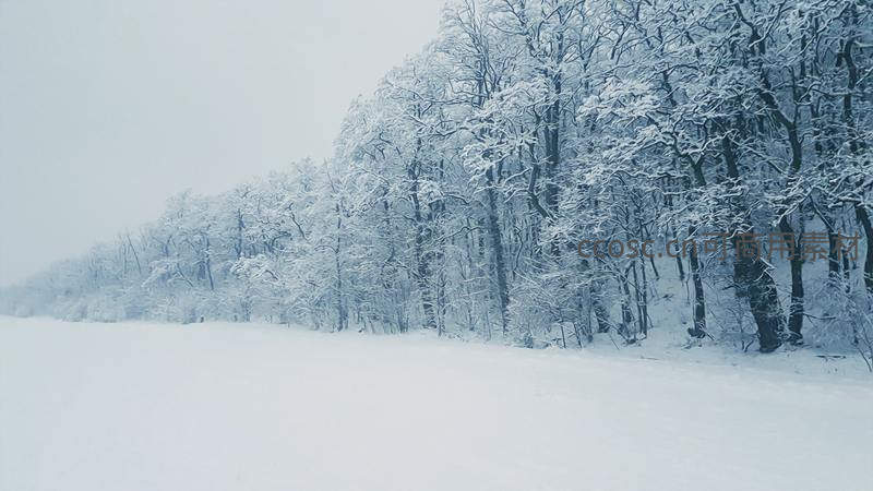 整片树林披上银装,树枝挂满晶莹雪花,地面铺满厚厚积雪,天地间一片寂静,仿佛时间在此刻凝固。
