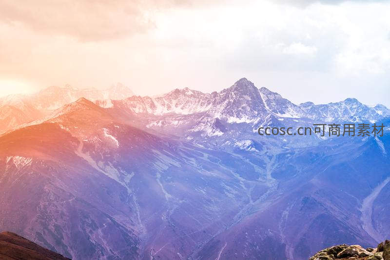 霞光万丈下的壮丽雪山山脉