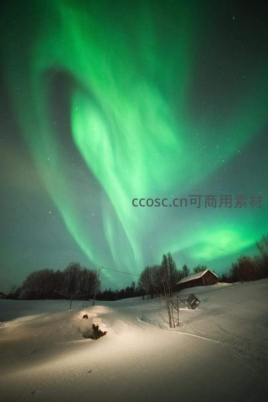 极光舞动雪夜小屋