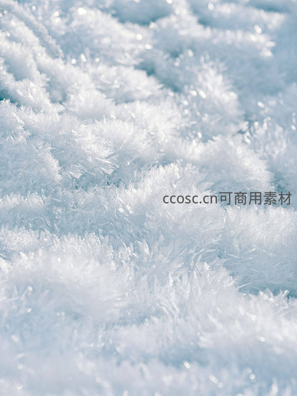 近距离观察,积雪表面由无数细小的雪晶构成,如绒毛般柔软蓬松,在阳光照射下闪烁着点点光芒,纯净而温暖。