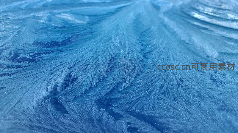 近距离观察窗户或物体表面形成的冰霜,其纹路如同羽毛或树枝般细腻蔓延,呈现出一种宁静而富有韵律感的视觉效果。