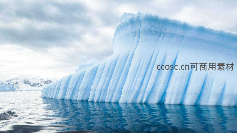 巨大的冰山矗立于海面,其侧面纹理如刀刻般分明,层层叠叠,气势磅礴,是地球气候变化的无声见证者,也是自然之美的极致体现。