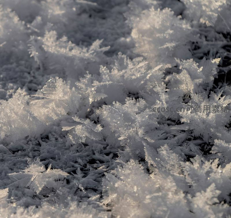 清晨阳光洒在草地上,无数细小的霜花如水晶般绽放,展现出大自然鬼斧神工的微观之美。