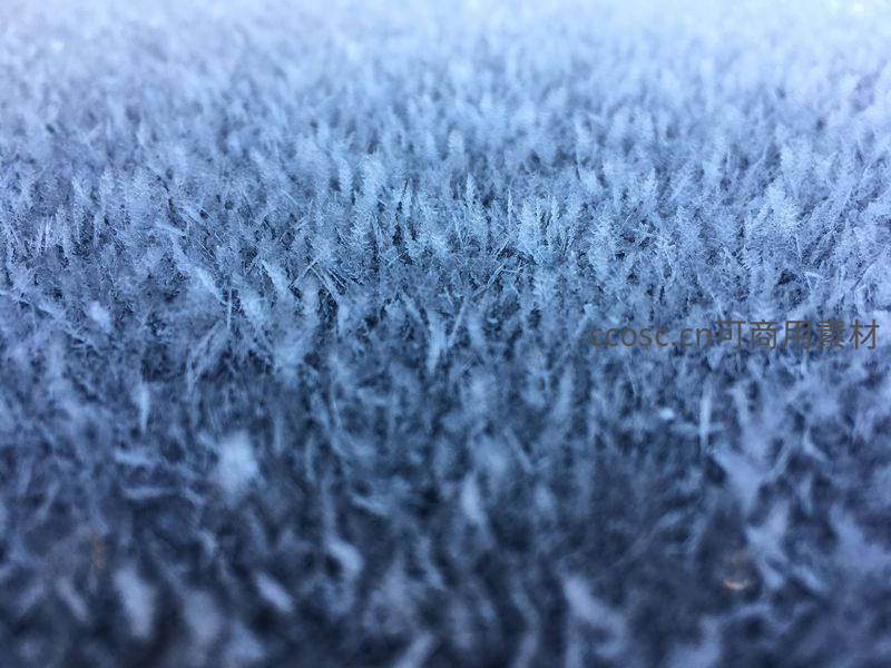 薄雾笼罩的清晨,整片草地被一层细腻的霜覆盖,在冷蓝色调中营造出宁静而神秘的冬日氛围。