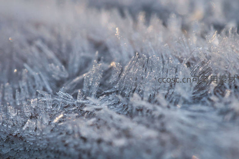 清晨阳光下,无数细小冰晶如银针般垂直生长,覆盖在物体表面,形成一片闪烁的水晶森林,展现出低温世界里令人惊叹的几何美学。