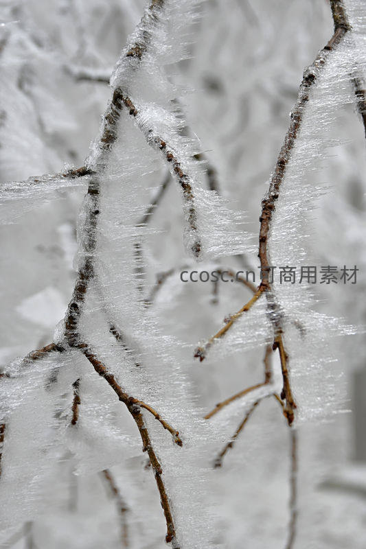 冰封枝桠,冬日森林的银装素裹