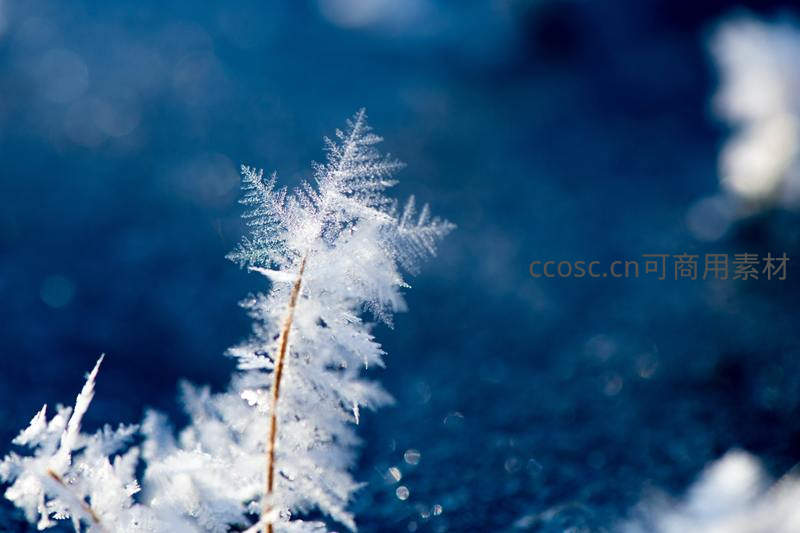 冰晶绽放枝头,冬日微距奇景