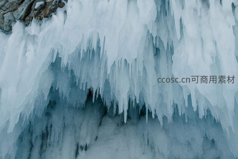 巨大的冰瀑从岩壁垂下,无数冰柱层层叠叠,通透的蓝白色泽在光线下折射出梦幻般的冷冽美感。