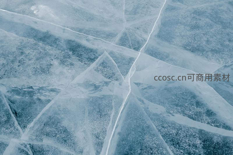 俯瞰冰封湖面,纵横交错的裂纹在阳光下闪烁,如同大地的血管,记录着严寒与压力的痕迹,展现出自然界的壮丽与力量。