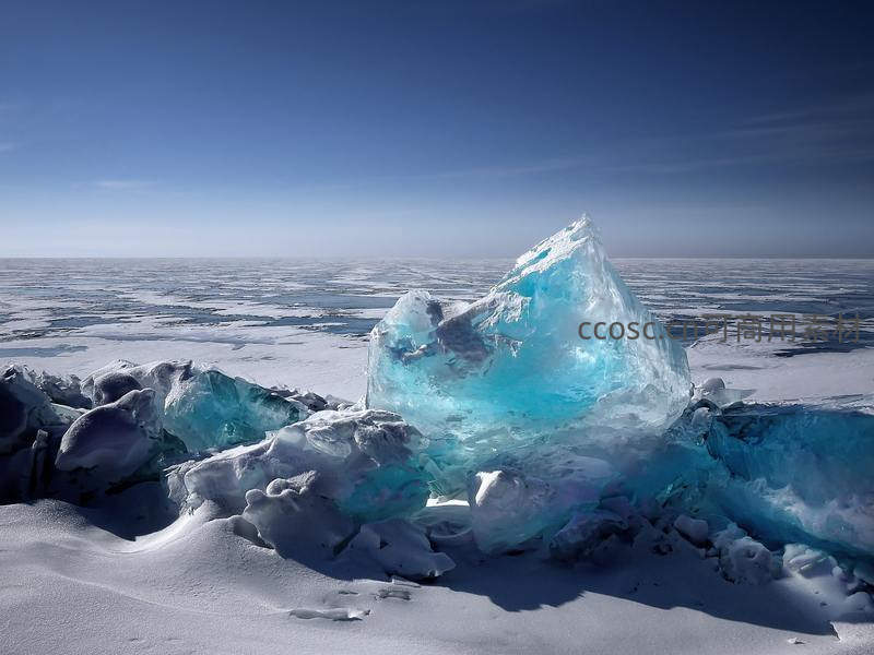 蔚蓝冰山矗立雪原之上如水晶宫殿