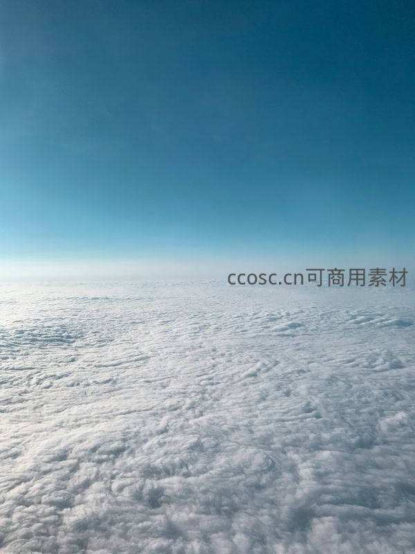 从高空视角俯瞰,洁白的云层如海洋般延展至天际,与清澈湛蓝的天空相接,营造出宁静而壮阔的视觉体验。