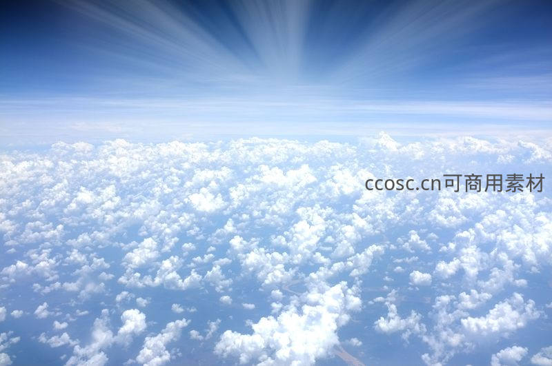从万米高空俯视,脚下是无边无际的白色云朵海洋,阳光均匀洒落,天空湛蓝纯净,带来一种置身仙境般的宁静与开阔感。