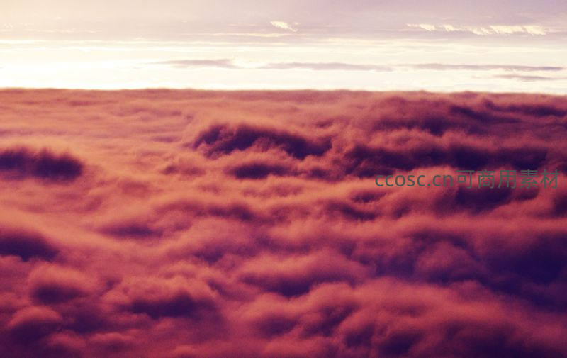 从高空视角看去,晨曦或晚霞将连绵不绝的云海染成一片瑰丽的粉紫色,云层如燃烧的绸缎般铺展,美得令人窒息。