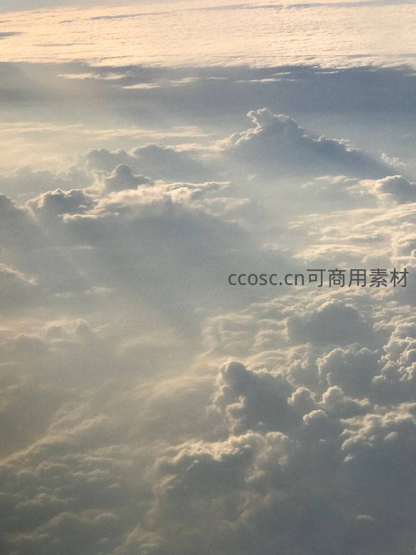 从高空俯瞰,层层叠叠的云朵如海洋般翻涌,金色的阳光穿透云层缝隙,为这片云海披上温暖而神圣的光辉。