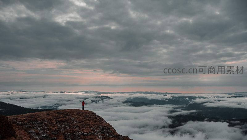 山顶孤影俯瞰云海,天地间唯我独尊的壮阔